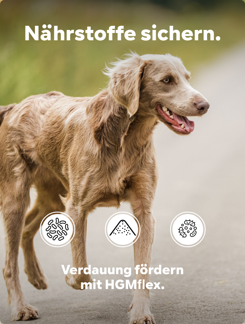 Mit viel Bedacht auf eine hochwertige Komposition zusammengestellt, eignet sich HGMflex Darm auch für besonders sensible Tiere.