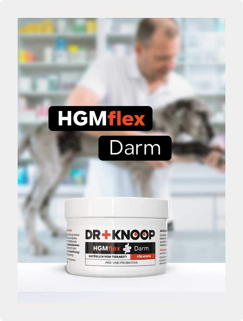 …Sollte sich durch unser HGMflex keine Besserung einstellen, bitten wir dich, deinen Hund beim Tierarzt für eine fundierte Diagnose vorzustellen.