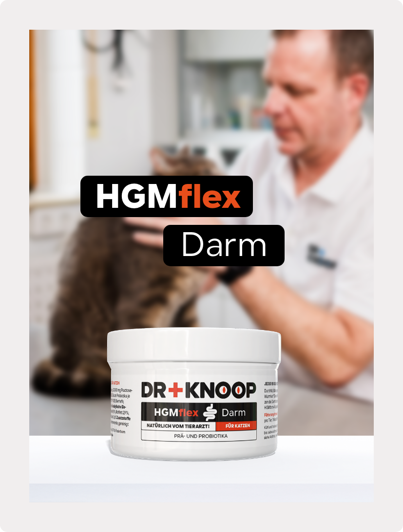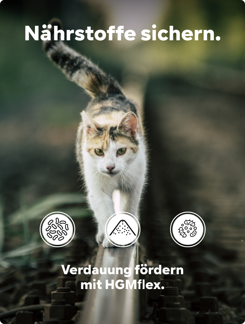…Sollte sich durch unser HGMflex keine Besserung einstellen, bitten wir dich, deine Katze beim Tierarzt für eine fundierte Diagnose vorzustellen.